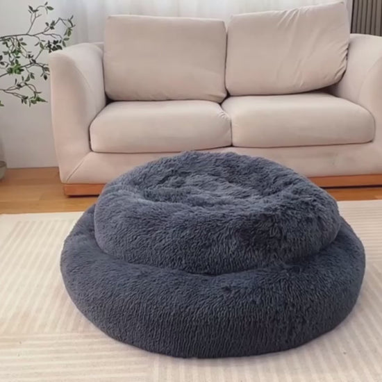 Plush Donut Bed is the ultimate therapeutic bed for pets. It is warm and cozy and good for all weather conditions. Perfect for nervous or anxious pets for a good nights sleep.